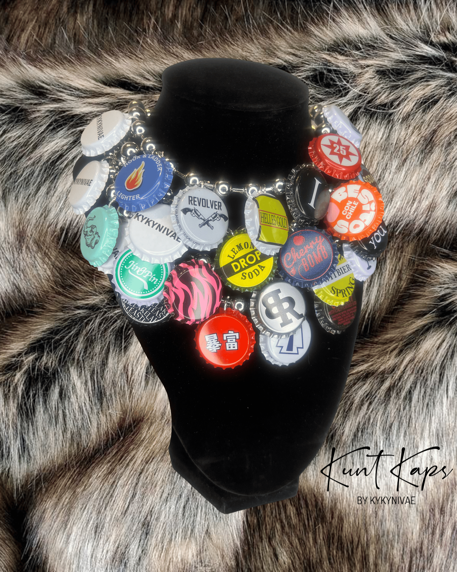 Custom 1 of 1 timeless piece. Each choker is handcrafted and made uniquely with a custom KYKYNIVAE cap and a random choice of stylish caps. Real fly, Real fashion, Real Kunt-ish💋